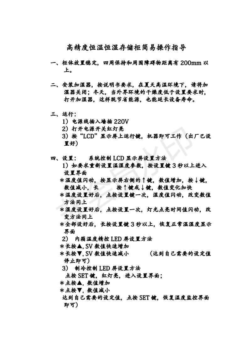 *高精度恒溫恒濕存儲柜簡易操作指導(dǎo)