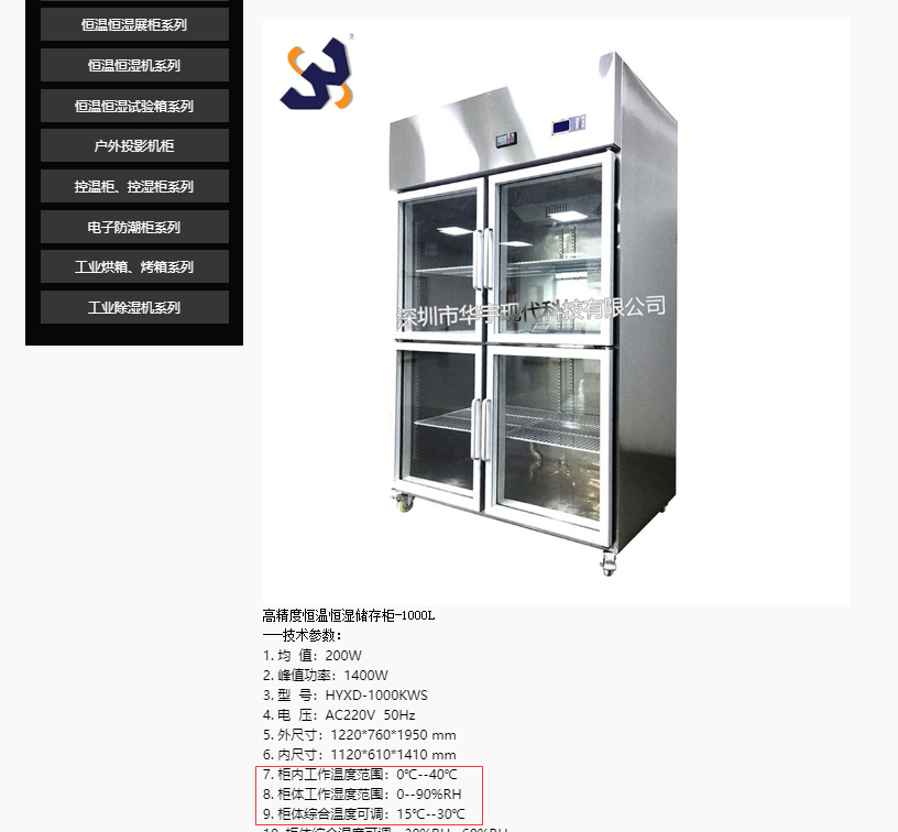 以下圖華宇現(xiàn)代控溫控濕柜來講其柜內(nèi)可控溫度范圍在0℃—40℃之間,溫度誤差值在0.5℃左右,對(duì)比雪茄18℃-20℃之間能夠完美滿足,濕度控制在0--90%RH之間,誤差值在4.5%RH之間。也是比較符合濕度控制范圍在65-75這個(gè)范圍。